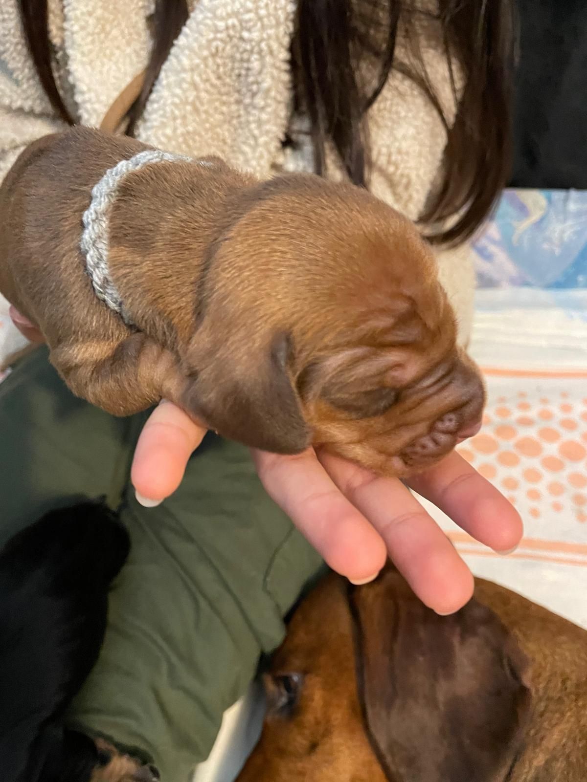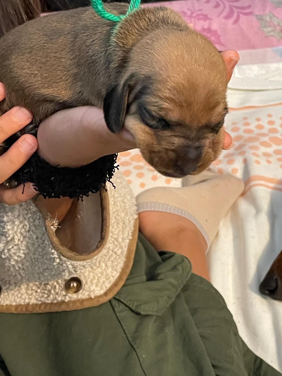 Die Welpen mit dem grünem, roten, pinkem und gelbem Bändeli sind Hündinnen.