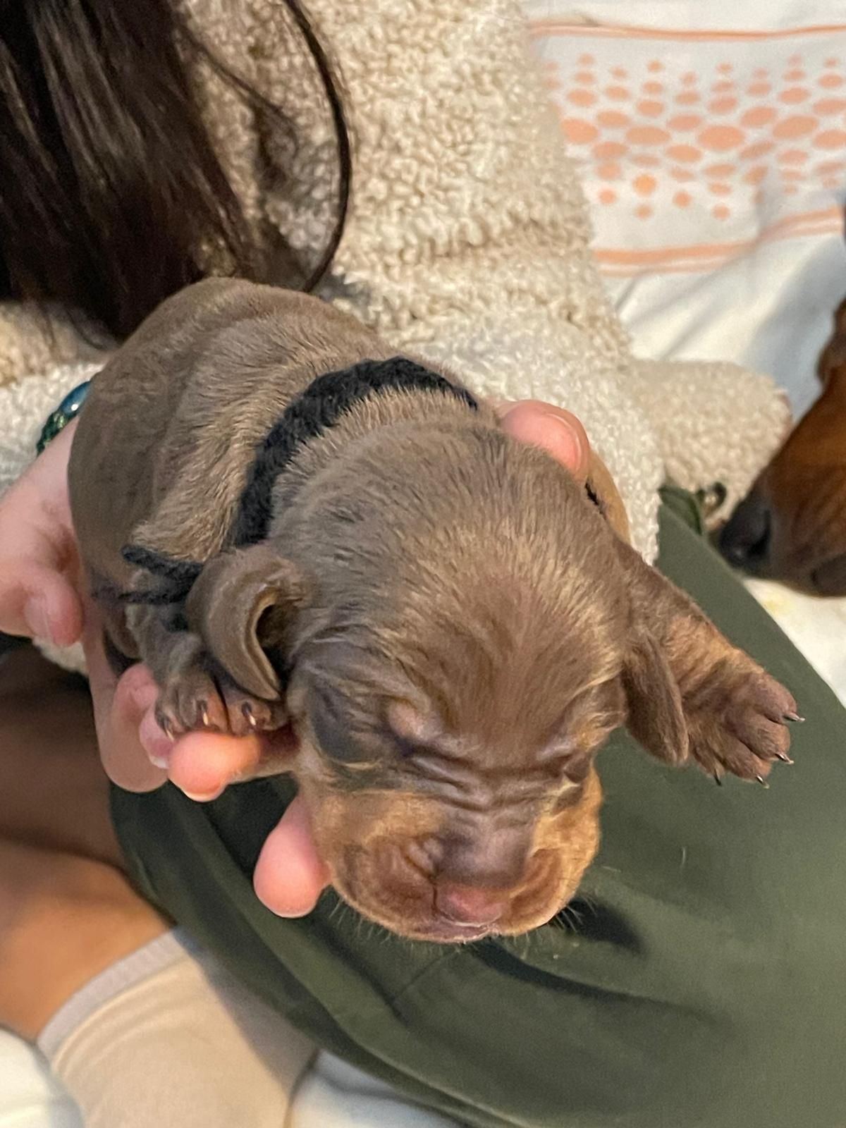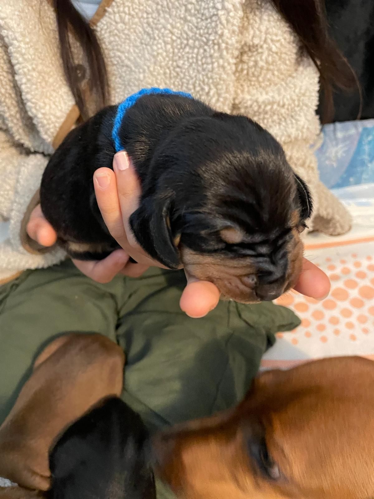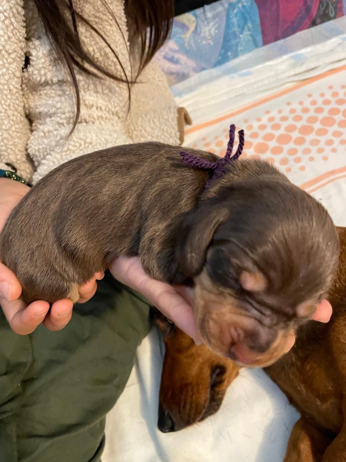 Die Welpen mit dem lila, grauen, schwarzen und blauem Bändeli sind Rüden.